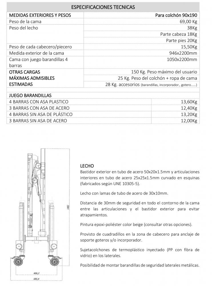 Esto tipo de cama facilita tanto el descanso del usuario como la labor de cuidador, estructura robusta que soporta hasta 150 Kg.