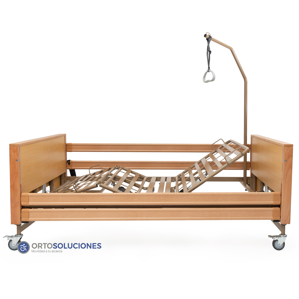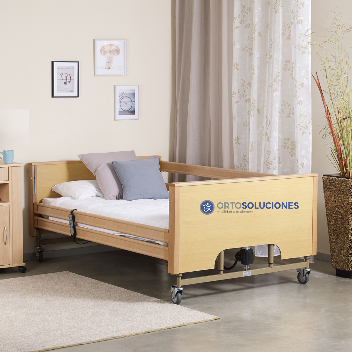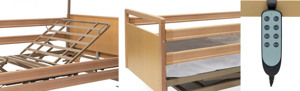 Es una cama fuerte y sólida diseñada para facilitar el trabajo de los cuidadores y construida según los requerimientos más exigentes para un uso intensivo tanto en residencias como en domicilios.