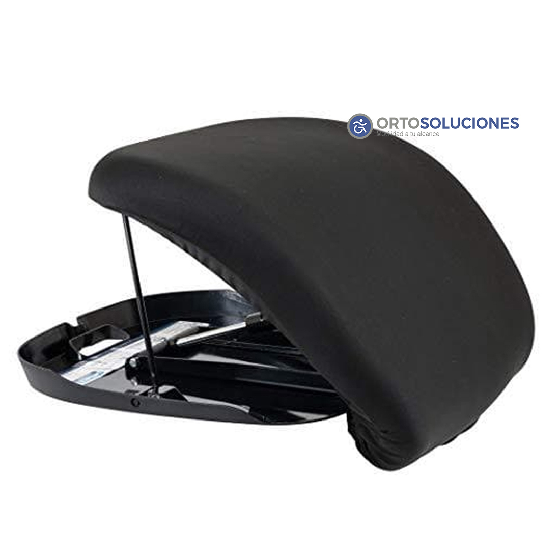 Cojín elevador portátil, transforma su silla o butaca en un asiento elevador automático. Sistema de elevación por pistón hidráulico, sin enchufes, ni pilas, ni cables. Ligero y portátil con asa integrada.