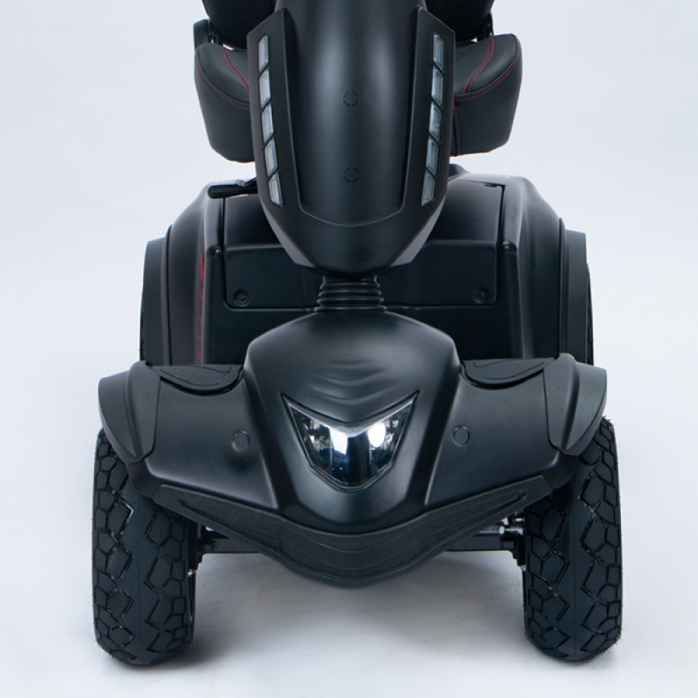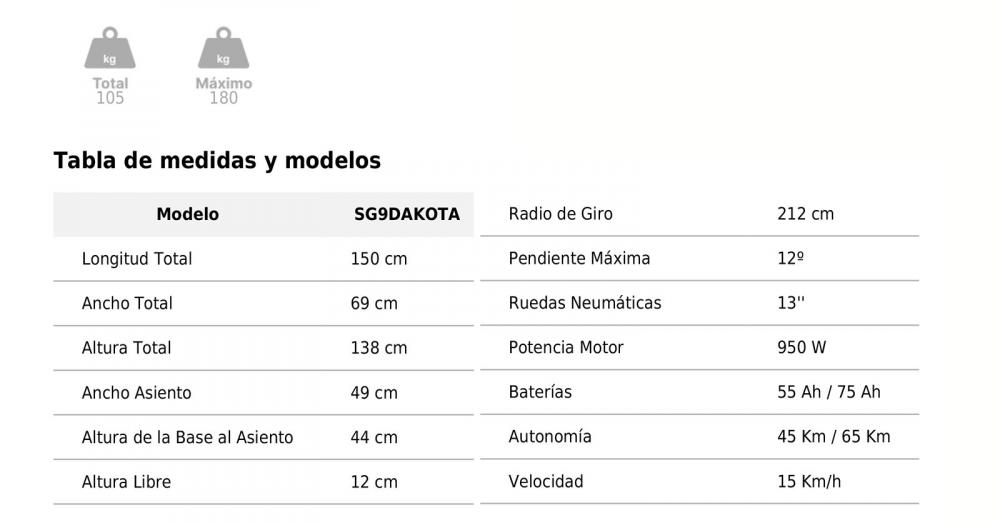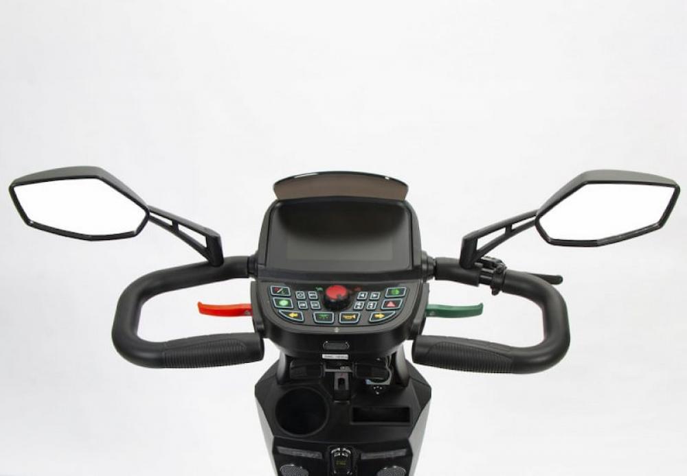 Su potente motor con 950 W permite superar pendientes de hasta 12º, mientras que las baterías de 55 Ah o 75 Ah proporcionan gran autonomía a este robusto scooter que soporta hasta 180 Kg.