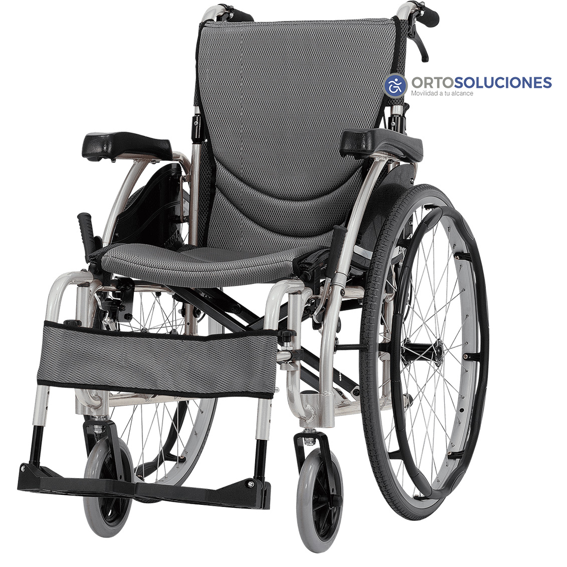 Silla Karma S-ECO 125, diseñada con reposabrazos abatibles, reposapies abatibles y desmontables. Con asiento S-ergo, Respaldo partido para facilitar el traslado. Silla ligera de aluminio.