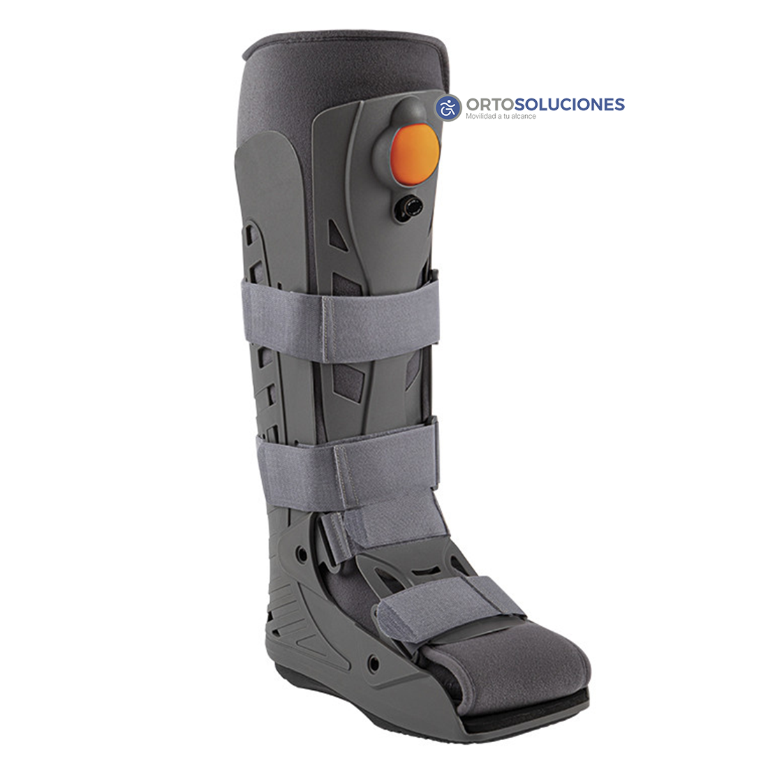 Incluye almohadilla envolvente de material transpirable para pierna, tobillo y pie, con una bolsa de aire (con bomba de inflado y válvula reguladora) que optimiza la superficie de contacto con el miembro para una mayor eficacia en el efecto de contención; Cinchas de sujeción para completar la adaptación del miembro a la órtesis, inmovilizando el mismo.